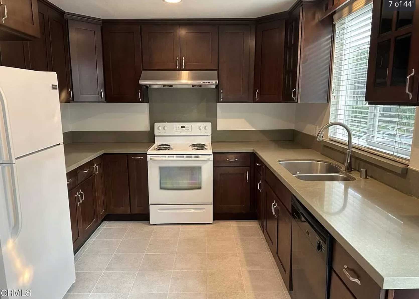 this is the photo from our listing before moving in. it’s perfectly fine and better than so many other rentals i’ve seen, but the white fridge and range, stainless hood, and black dishwasher left much to be desired by way of style.