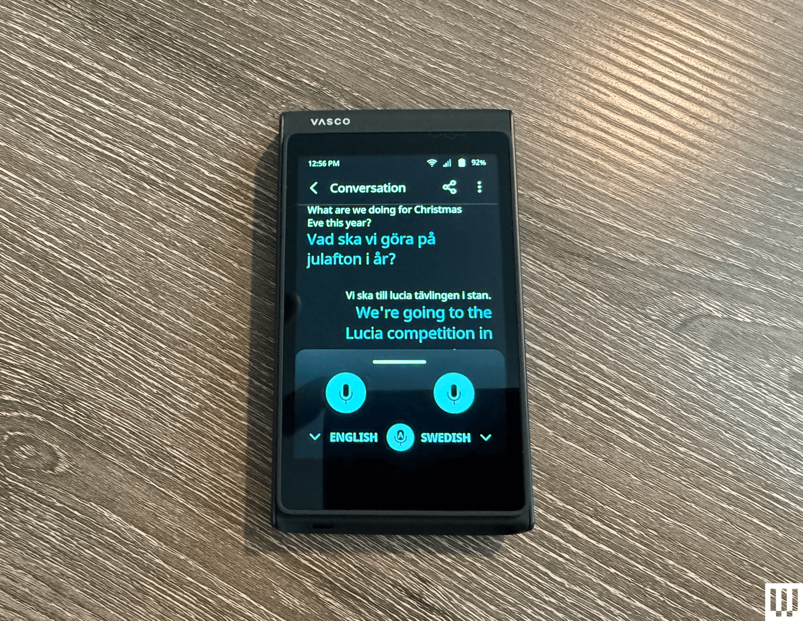 The device has no moving parts, with just a 3.5-inch touchscreen that covers its face and a few buttons on each side. These include power and volume buttons, and the now standard pair of “talk” buttons—one to recognize your partner’s voice and one for your own. In many modes, you won’t need to use these, however. Like most handheld translators, the unit includes a preloaded SIM 4G card that gives it near-global usability. (Vasco says it works “in nearly 200 countries,” which is a lot, since there are only 195 widely recognized nations today.) 2.4-GHz and 5-GHz Wi-Fi are also available when you’re in range of a hot spot or at a hotel.
